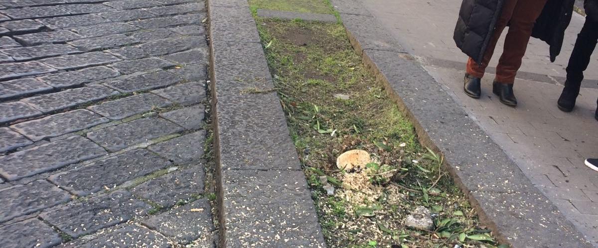 Nella mattina di ieri alcuni cittadini hanno notato i resti degli alberi dell'arteria barocca cittadina per terra. L'ipotesi avanzata dai residenti è che le piante sia state eliminate per questioni di sicurezza legate al percorso del fercolo della patrona. MeridioNews non è riuscito a contattare l'amministrazione
