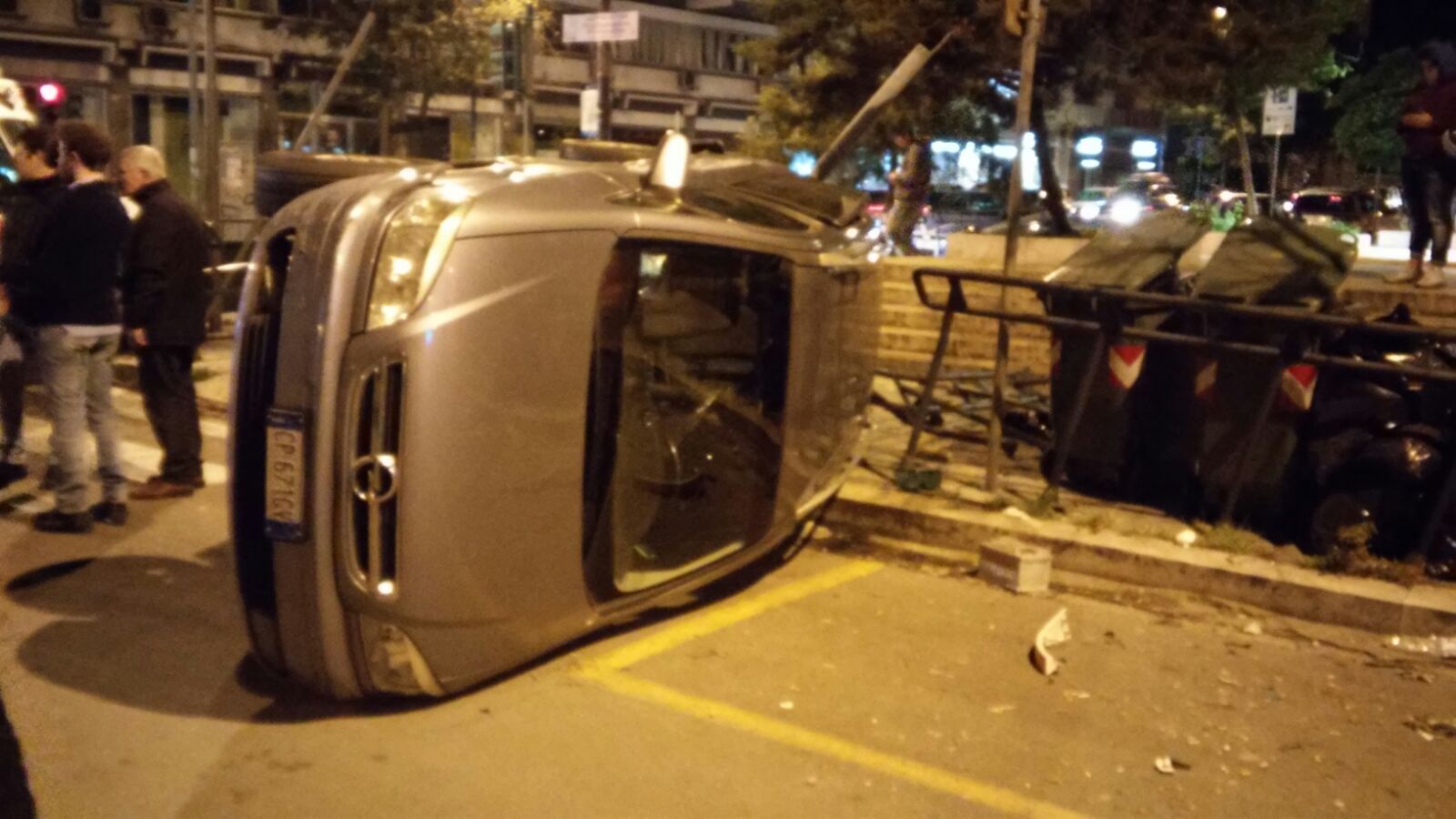 Terribile incidente, tre i feriti. La vettura, dopo l'impatto si è ribaltata su un fianco, mentre il mezzo di soccorso ha finito la propria corsa contro i cartelli pubblicitari. Guarda le foto