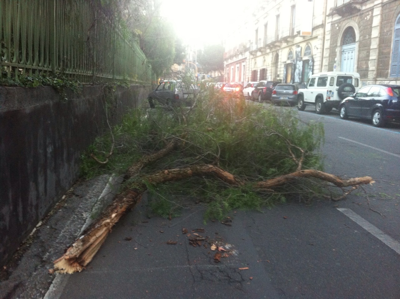 Il ramo, molto pesante, si è staccato da uno degli alberi del parco urbano cittadino. Sul posto sono presenti uomini della polizia municipale e una squadra della Multiservizi sta lavorando alla rimozione. Il traffico al momento non sta risentendo in maniera particolare della riduzione di carreggiata. «Stiamo lavorando incessantemente per monitorare gli alberi in stato di pericolo soprattutto le palme», afferma in merito all’episodio l’assessore al Verde del Comune di Catania Rosario D’Agata. Il compito di mantenere la sicurezza non è però semplice a detta del membro della giunta guidata da Enzo Bianco: «Abbiamo sedicimila alberi, fra piazze, vie, parchi e quindi non è facile prevedere tutto», conclude D’Agata.