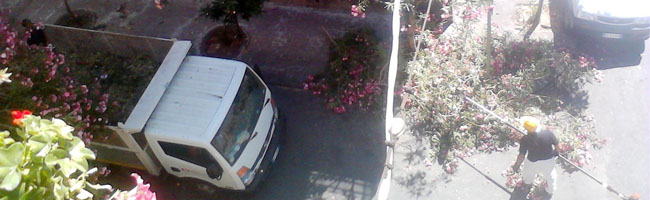 Gli oleandri di via Torre Alessi, a Catania, tagliati drasticamente per lasciare posto alle automobili parcheggiate sul marciapiede. Lo segnala un lettore sulla bacheca Facebook di CTzen. Secondo il cittadino, una potatura così drastica e per di più in questo periodo sarebbe letale per le piante. «Potare gli oleandri a giugno, in piena fioritura, è ucciderli», scrive. A causare l’intervento di ieri mattina di giardinieri e tecnici del Comune etneo, i continui reclami dei residenti della zona. La rigogliosa chioma infiorata degli alberi, infatti, causava non pochi problemi di visibilità dalle abitazioni e disagi per le auto in sosta, sporcate da foglie e resina. «Non potevano sradicarli e hanno fatto così – lamenta il lettore – Adesso la strada è libera dai fiori ma non dalla plastica, e dai balconi è più facile guardare la propria macchina assolata sul marciapiede».