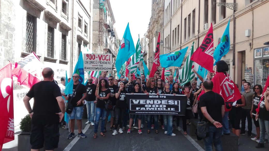 In un comunicato i lavoratori della Wind Tre ricordano «la realtà allarmante di oggi: 107mila disoccupati a Palermo, 6mila posti di lavoro persi solo in un anno, un tasso di disoccupazione che supera il 25 per cento». Per poi segnalare che «la nostra classe politica nella sua equidistanza tra lavoratori e aziende continua, colpevolmente, a favorire un mercato, che lungi, dall’autoregolamentarsi, provoca sempre più diseguaglianze e ingiustizie sociali. Il fatto è che noi non siamo né in Germania, né in America e chi da noi perde il lavoro non ne trova un altro».