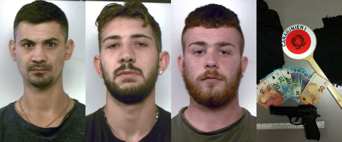 Dopo il colpo, effettuato con il volto coperto da passamontagna, i tre avrebbero abbandonato la Fiat Uno e avrebbero tentato di sparire a bordo di un furgone Fiat Ducato, guidato dalla quarta persona coinvolta. In questo passaggio, il gruppo è stato bloccato dai militari che, dopo avere ricevuto la segnalazione della rapina dal proprietario del locale (quest’ultimo aveva chiesto aiuto al 112), li hanno bloccati. Oltre alla Fiat Uno rubata, i carabinieri hanno recuperato la pistola (una riproduzione di quella in uso alle forze dell’ordine), i passamontagna, dei guanti in lattice monouso e l’intera refurtiva. Gli arrestati sono stati portati nel carcere di piazza Lanza.